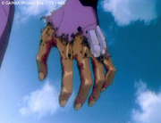 Evangelion Unit-01's hand exposed
